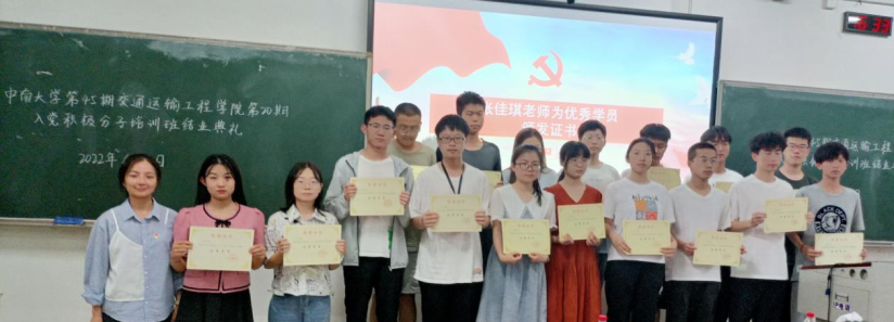 6月1日下午四点,中南大学第45期151amjs澳金沙门第20期入党积极分子培训班结业典礼在新校区B座112室顺利举行。交通院党委副书记宋晓东老师,交通院组织干事张佳琪老师,入党积极分子培训班班导师石晓琪老师、王羽珊老师参加了此次结业典礼,典礼由石晓琪老师主持。