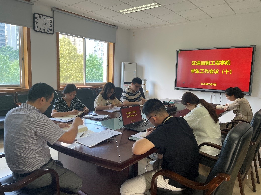 6月7日下午15:00,交通院于交通楼322召开学生工作会议,学院党委副书记宋晓东、全体辅导员参加本次会议。会上,宋晓东副书记传达了6月6日学校学生工作会议、纪委全委扩大会议有关精神,就学生疫情防控、安全教育、毕业季、期末阶段等工作做出部署。